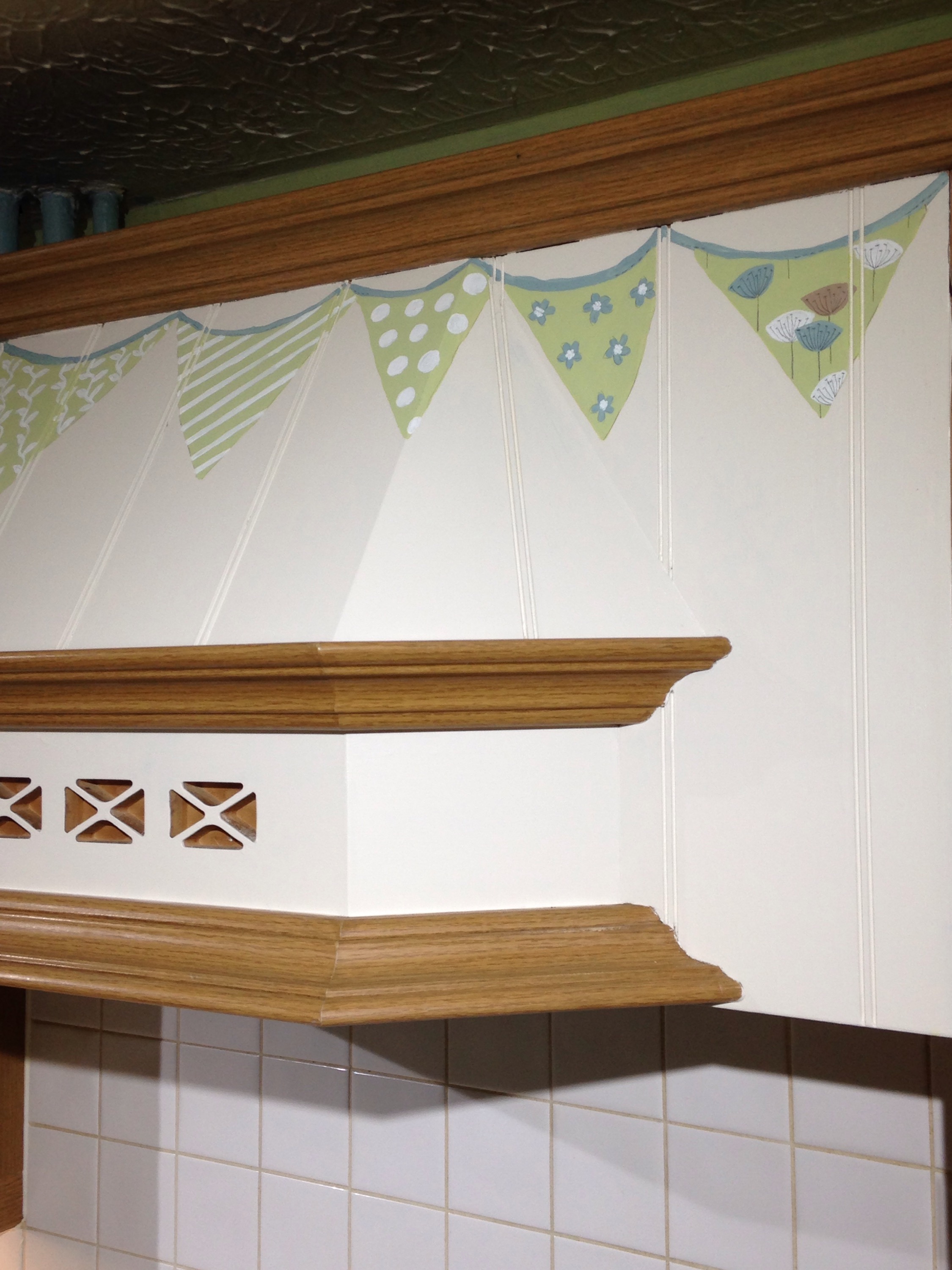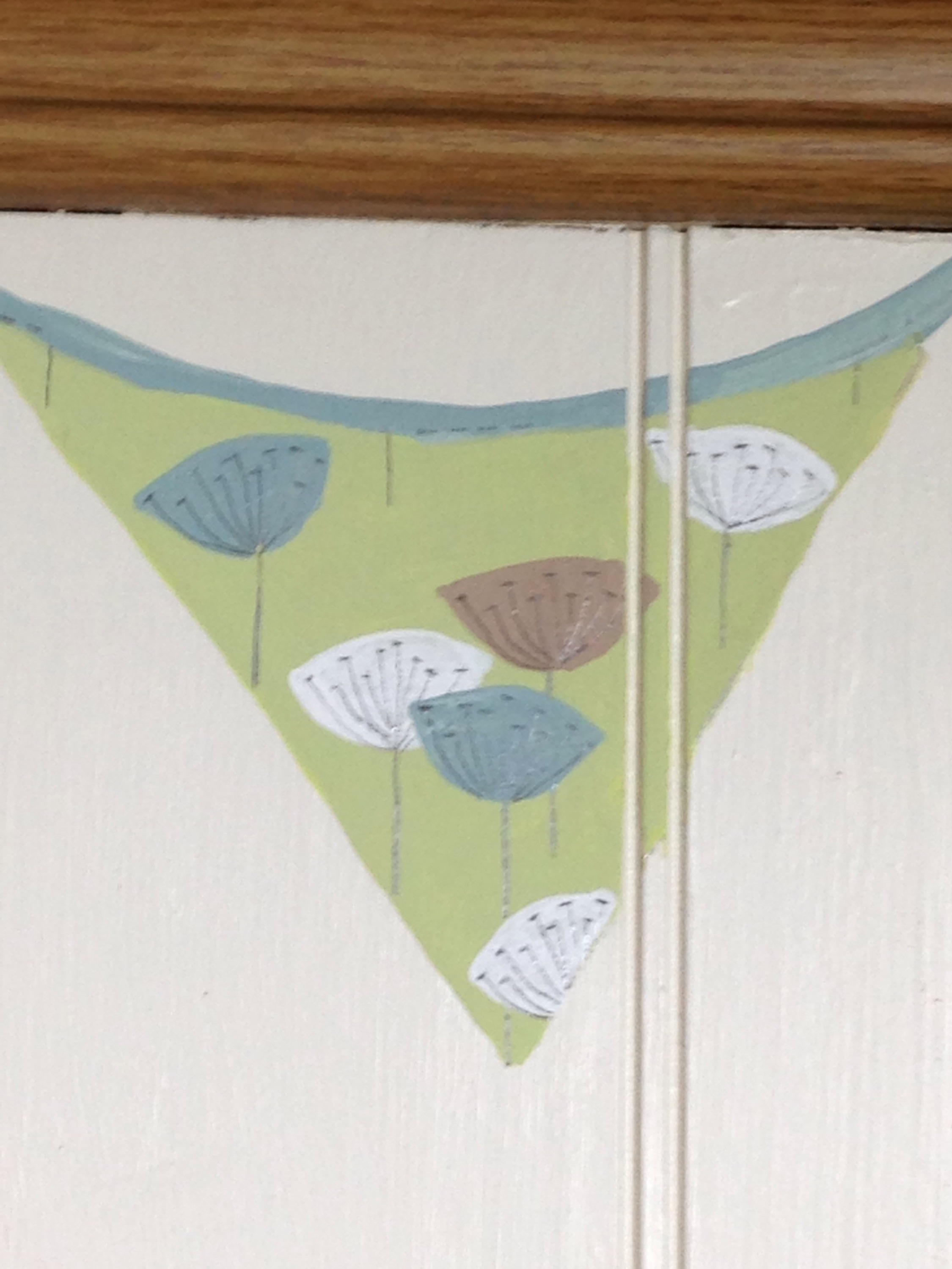 Here’s how it’s going… Bunting painted this morning and chicken & cockerel added this evening….around midnight!!!