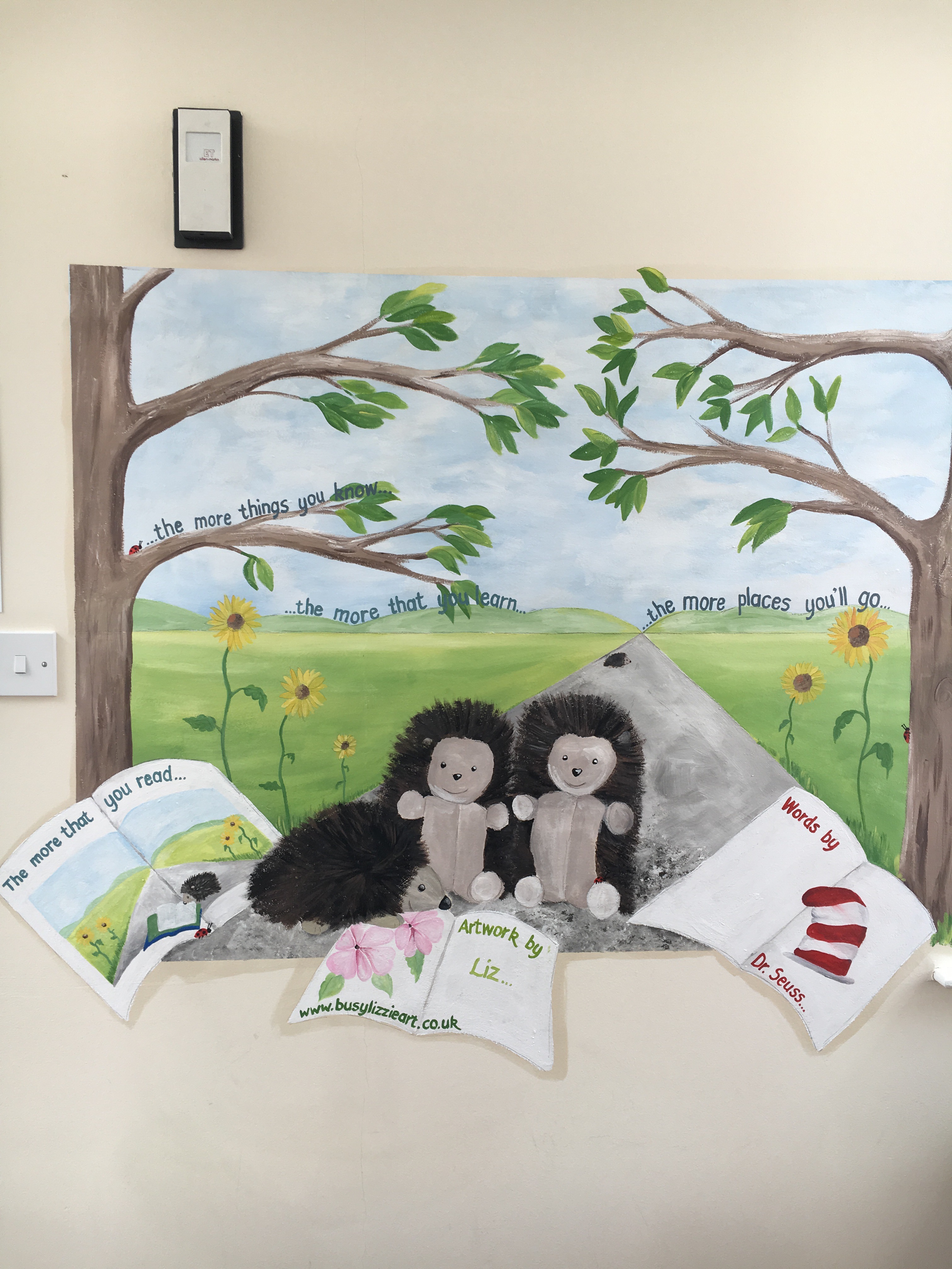 Resources 4 Learning in Bridgwater, now have a wise-words wall, with quotation from Dr Seuss: “The more that you read, the more you will know…the more things you learn, the more places you’ll go!” which is embedded in an original Busylizzie painting…