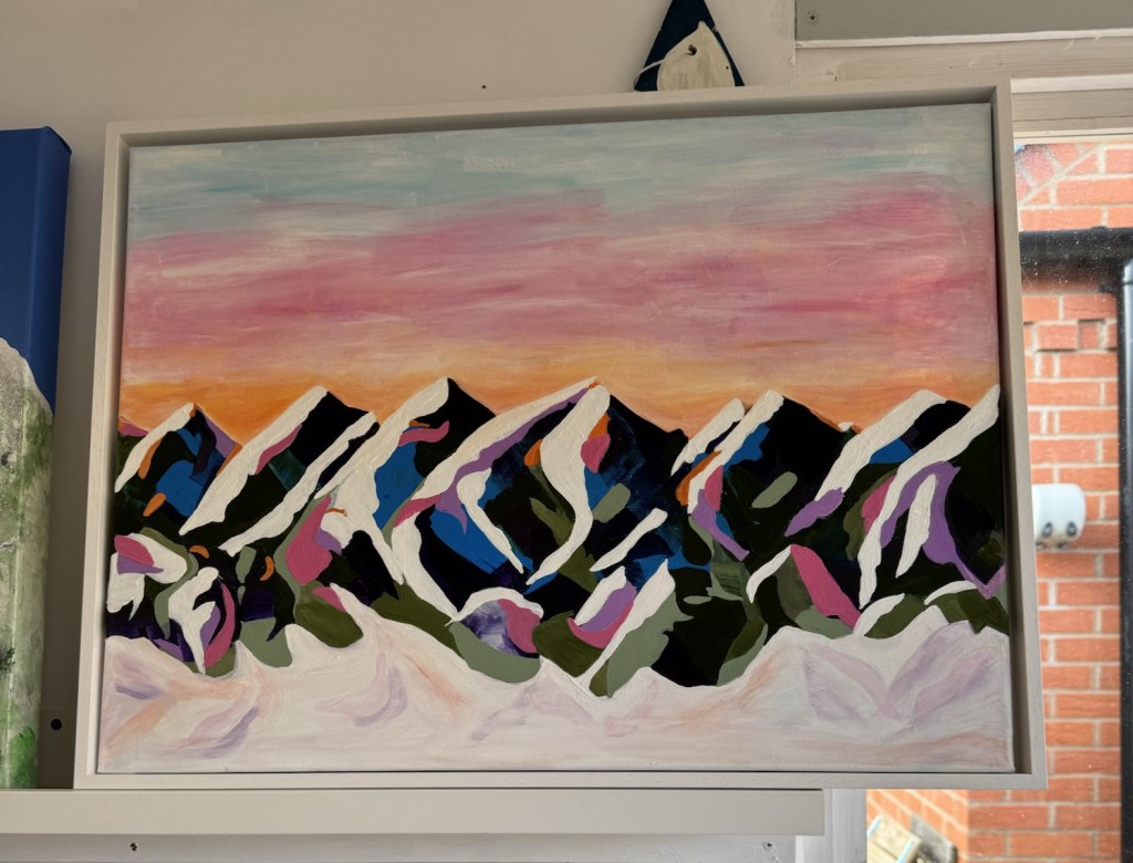 Acrylic on slim canvas approximately 300 x 400mm framed with painted pine floating frame. £275