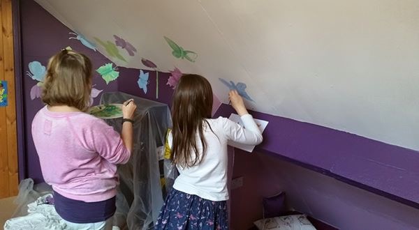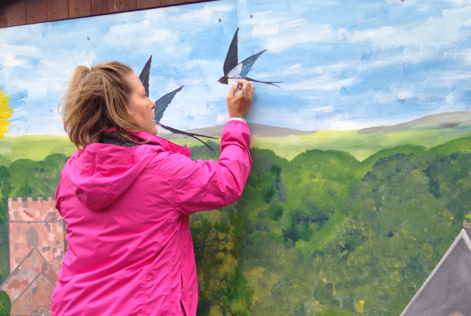 Finally, the foreground of the canvas, which combines both ‘real’ and imagined parts, is filled with some ‘bug hotels’ and discarded pruned branches to complete the scene – these provide ‘accommodation’ for the smallest, but highly helpful of creatures in our garden