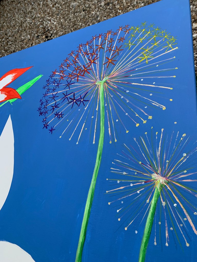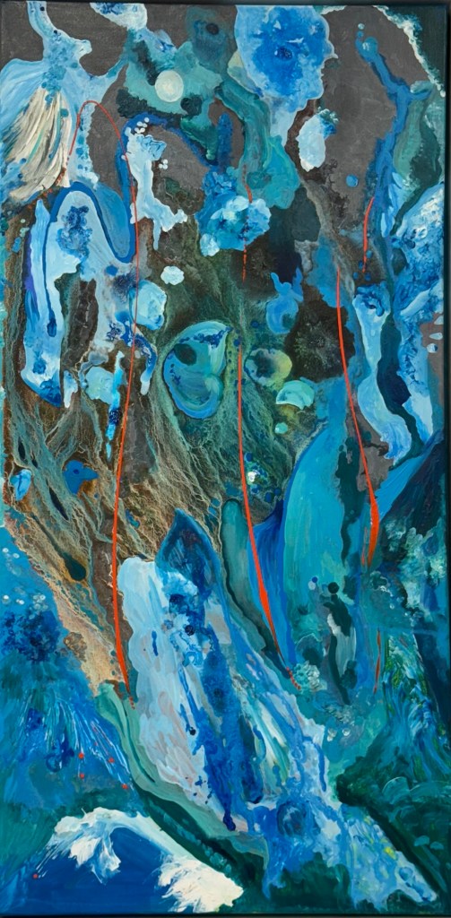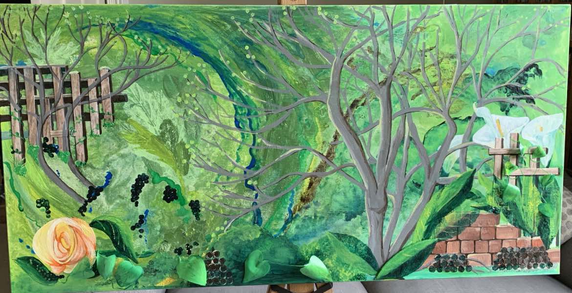 As the artist, I feel drawn to the “Bigger Picture” of this whole situation, the transformation around the world, hope for the future and some fear but in my garden, I have a sense of feeling safe…of strength, serenity, and sanctuary.
