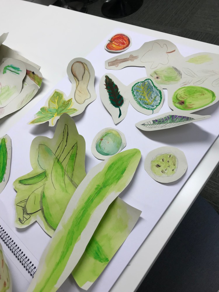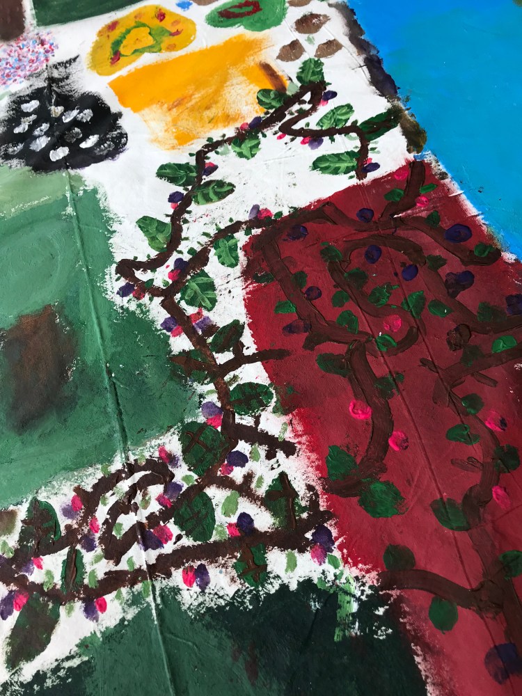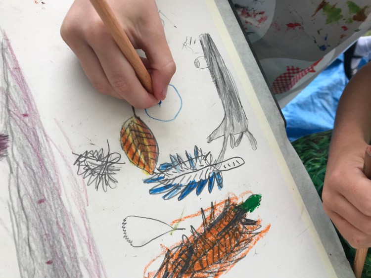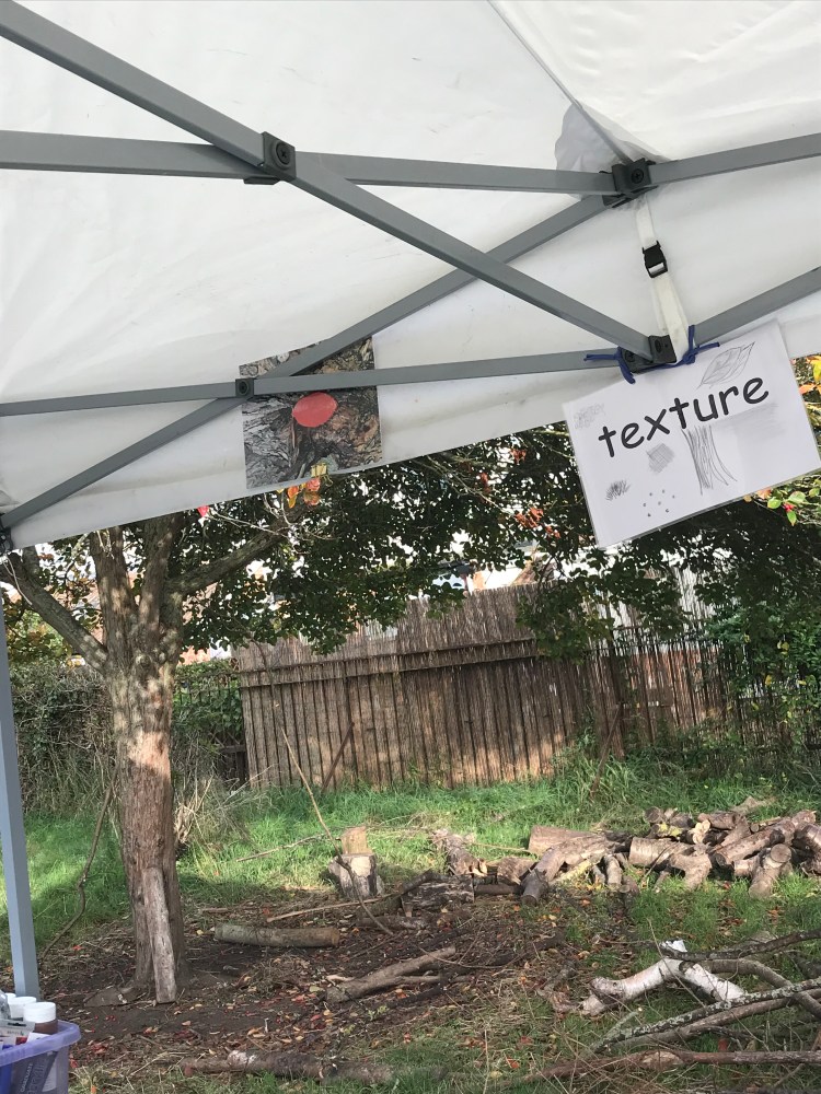 We have provided outdoor creative workshops, encouraging primary school children from St James Church School, Taunton, St George’s Catholic Primary School and Bishop Henderson Primary School, to capture visually, ‘a sense of place’ of their forestschool / environmental area… There are five massive 2m x 1.5m vibrant canvases and hundreds of beautiful, observational drawings created and these will be on show at Queen’s College on Thursday 24th October and then at Taunton Library from 28th October until mid November…