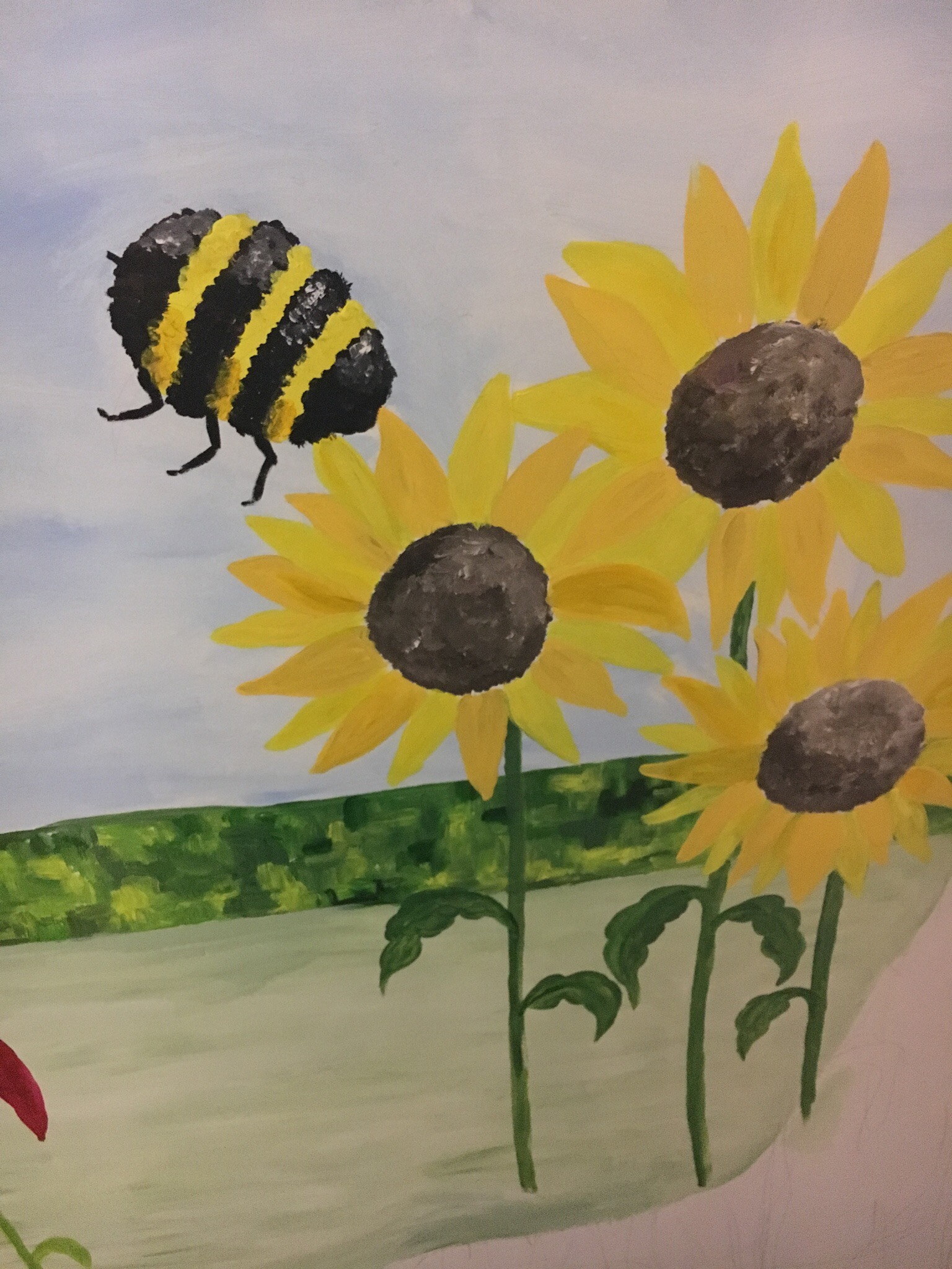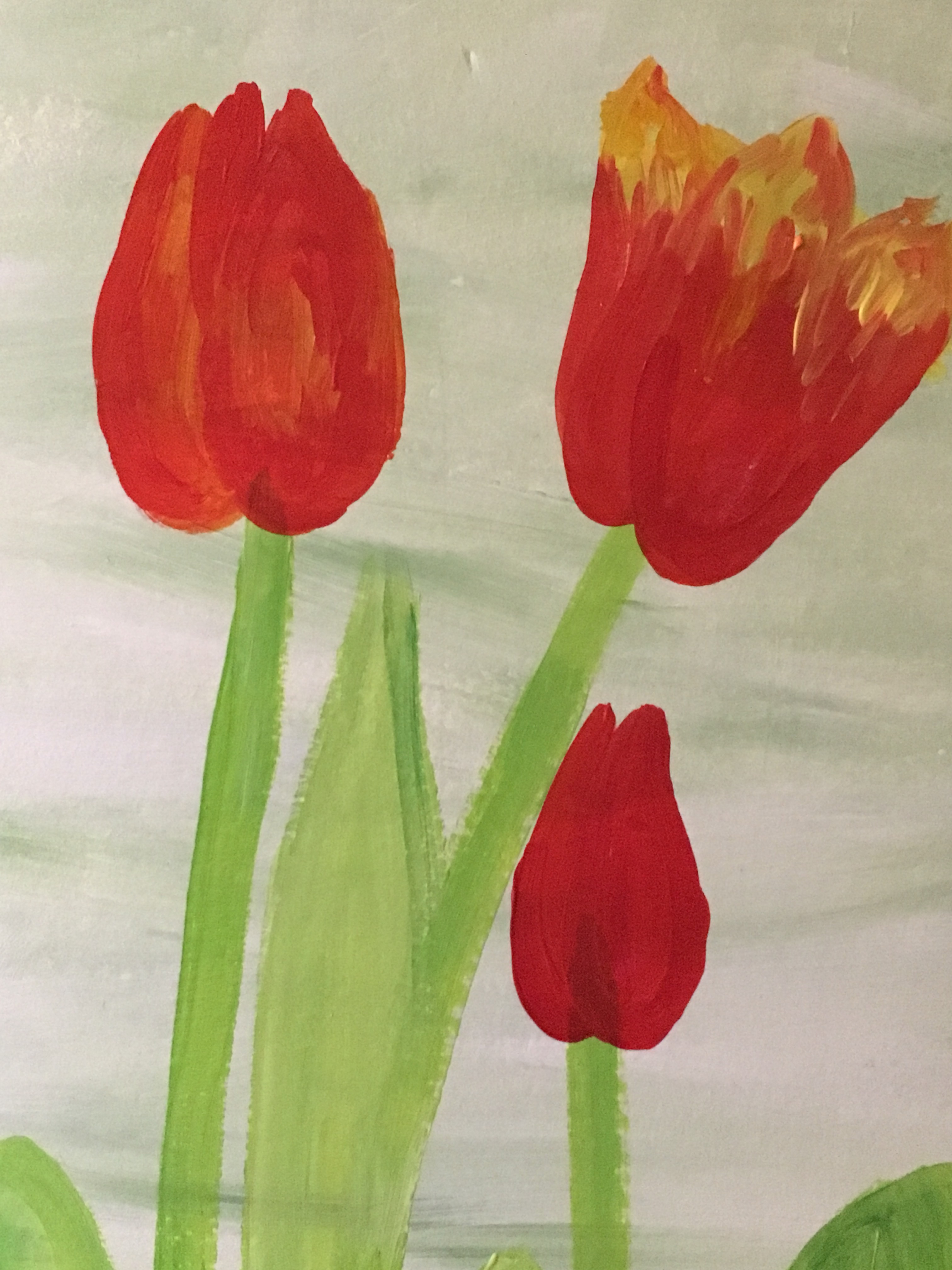 Creating giant paintings stretching across several canvases in the style of David Hockney was planned by Liz of Busylizzie Art for Y6 at Bishops Hull Primary School in Taunton.