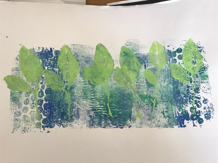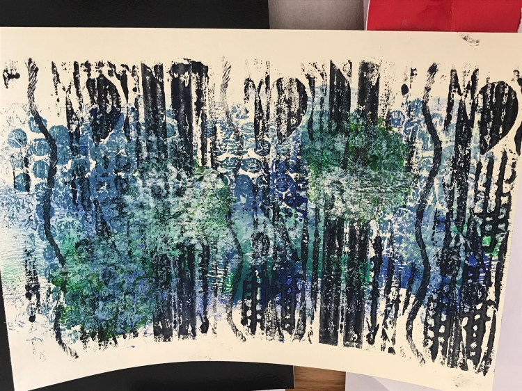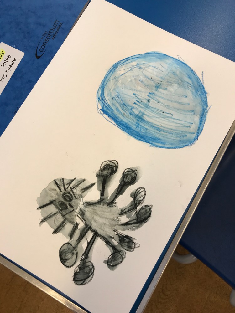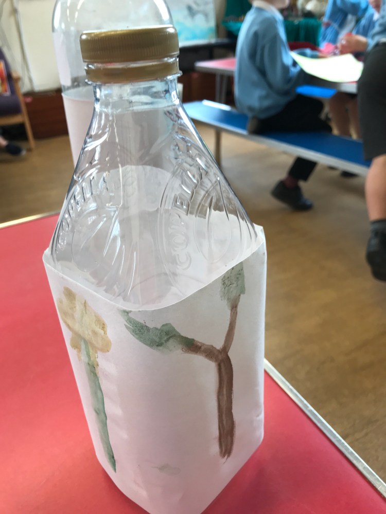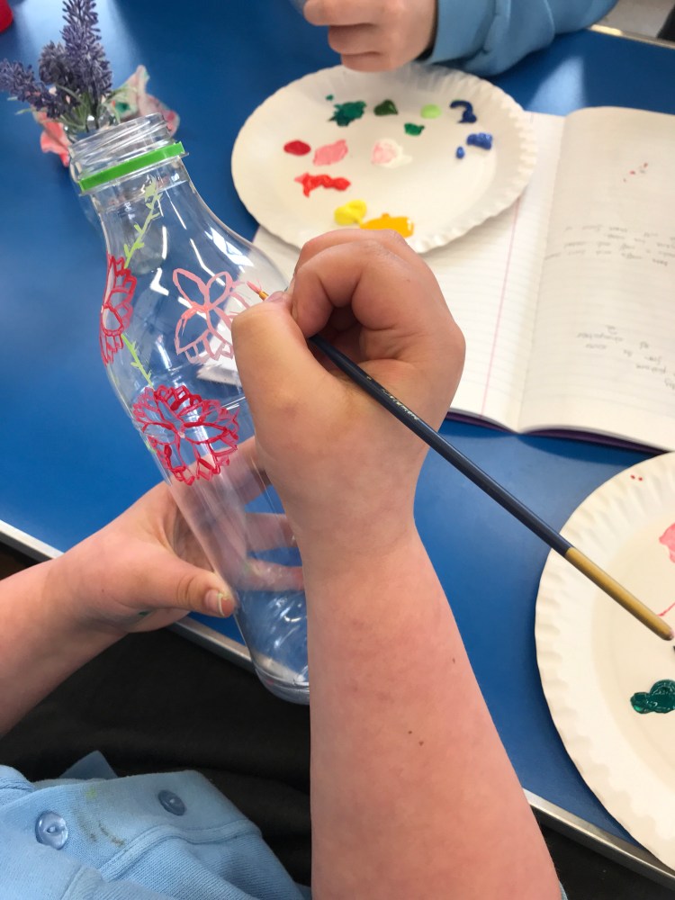 Masking tape and stencil techniques were employed where appropriate, they have worked collaboratively, looking very closely to mix colour, tones of colour and create space in their paintings.