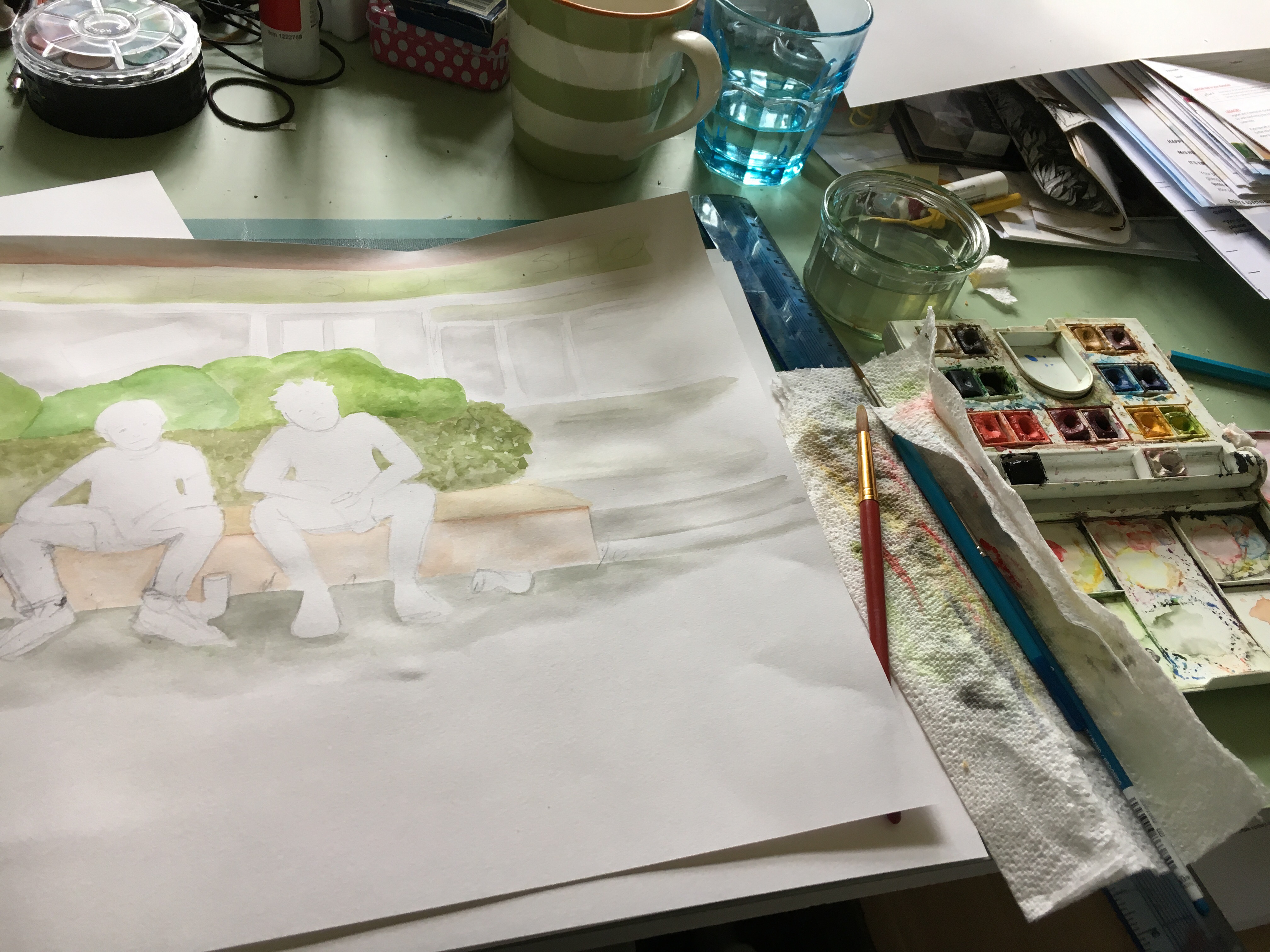 In between designing and painting the KS1 foyer at Combe St. Nicholas Primary School, organising, planning and delivering the schools art workshops for Taunton Live 2016, designing and hand-making a set of Harry Potter-style Wedding Stationery based on the Marauders map, mounting an exhibition of my watercolour work in Eden Flowers for July and August and several other jobs too, I continued to create more illustrations and began playing around with Adam’s original words, to create the text for the book.