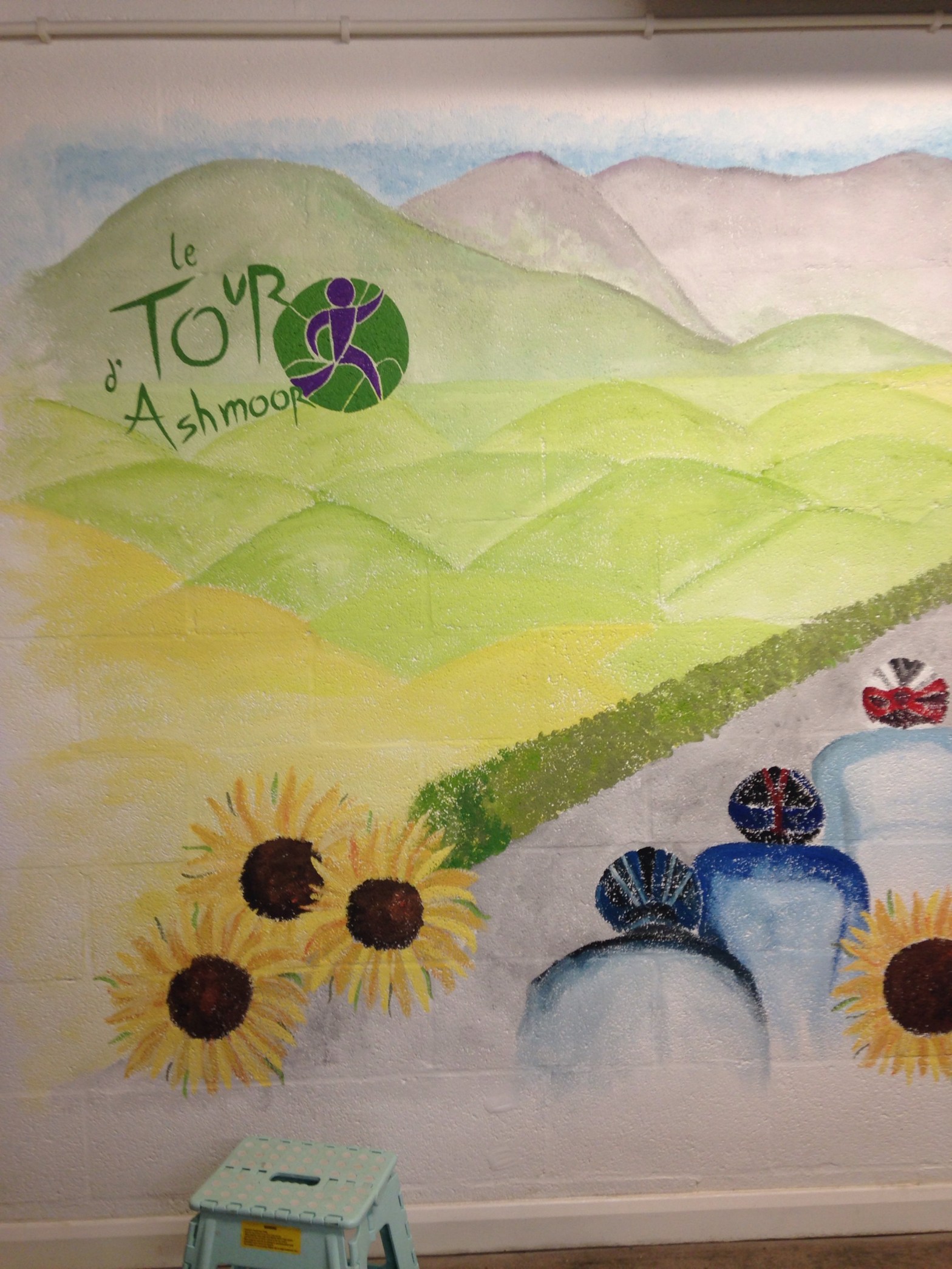 Members of South Dartmoor College’s Ashmoor Community Sports Centre using the spinning studio, can now literally follow the tour!!!! The view of the finish line in a stage of the Tour de France has been ‘customised’ and painted by me, Liz, of Busylizzie Art…. The scene shows the road and cyclists heading into theContinue reading “Tour d’Ashmoor…”